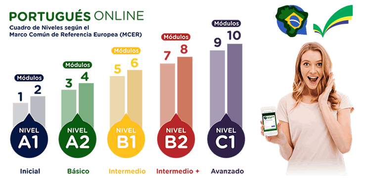 El curso de portugués está basado en los niveles recomendados por el Marco Común Europeo de Referencia para las Lenguas (MCER).